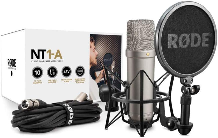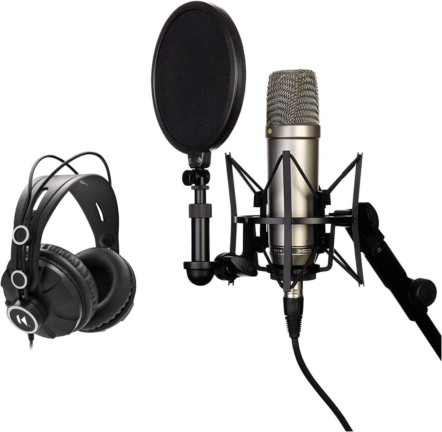 حزمة ميكروفون مكثف صوتي للذكرى السنوية من رود مع سماعات رأس نوكس طراز NT1A عبوة عنصرين XLR أسود